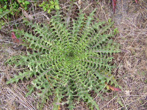 The large thistle rosette nearby had no such adornment but its radial symmetry was eye-catching.