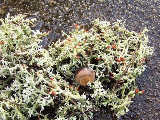 To see this last bit of red, you have to get down on your hands and knees. It is part of reindeer moss which is not a true moss, but a lichen. It grows here in sandy places where scrub oaks are found. But it also grows on the tundra and is a food for reindeer, hence the name. Every December, we collect some for S's kindergartners to put out on Christmas Eve.