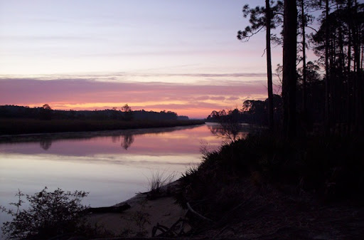 This picture is one I took at this park a year ago when we took the scouts camping. It shows the Dead River at low tide at dawn when a forest fire had smoked up the sky.