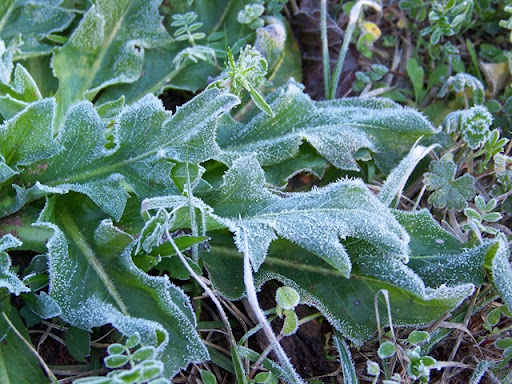 It does not snow here. or not very often. When we have heavy frost like we had this morning, it is about as close as we get. A few weeks ago, we had heavy frost and S took her bundled-up kindergartners out in the schoolyard to examine the beauty of frost. Each went armed with a magnifying glass. They would not have been more excited if it had been snow! Each brown leaf had been edged in crystals. The grass crunched under our feet. We even discovered a wheelbarrow with a large sheet of ice in it: fascinating stuff! We were able to find water in solid, liquid and vapor forms, one of our more difficult kindergarten concepts for five-year-olds to grasp.