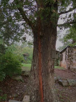 As we walked up from the parking lot, we noticed this oak that had recently been struck by lightning--the risk and price of growing on top the mountain.