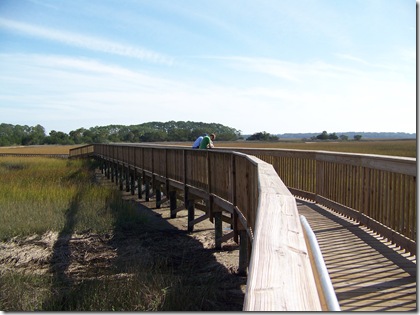 It was a very sunny, very warm day for December 2nd. We had spent the night just north of St. Augustine with our older son and his fiancee and set out this morning to visit the boardwalk in her neighborhood. It is a long boardwalk through a salt marsh that terminates at the Intracoastal Waterway. There were a few mosquitoes and no-see-ums but we were thankful that they were better than sometimes.