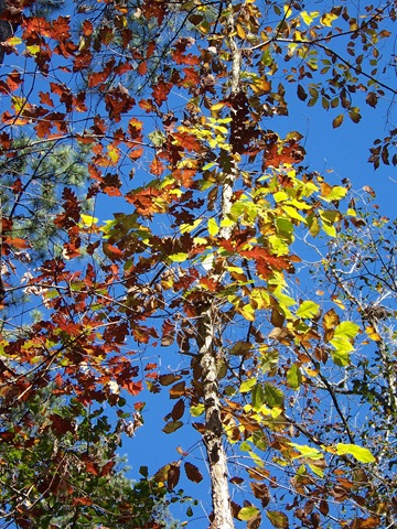 Most of the leaves were down in the woods, though if you looked up you might see the occasional golden sugar maple and this swamp chestnut oak that was down-right gaudy in its chartreuse, yellow and orange get-up.