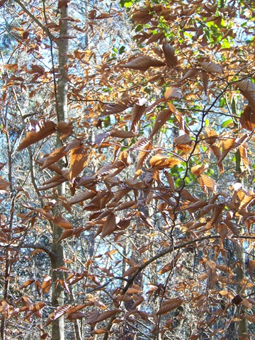 The beech cling to their brown, papery leaves until late spring and only drop them when the new ones are coming out.