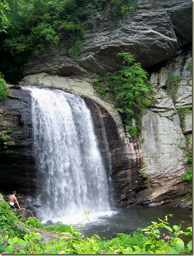 By far the most fun for the Scouts was the morning at Sliding Rock. This is a local swimming hole with a built-in slide of sheer rock slab. We got there before anyone else.